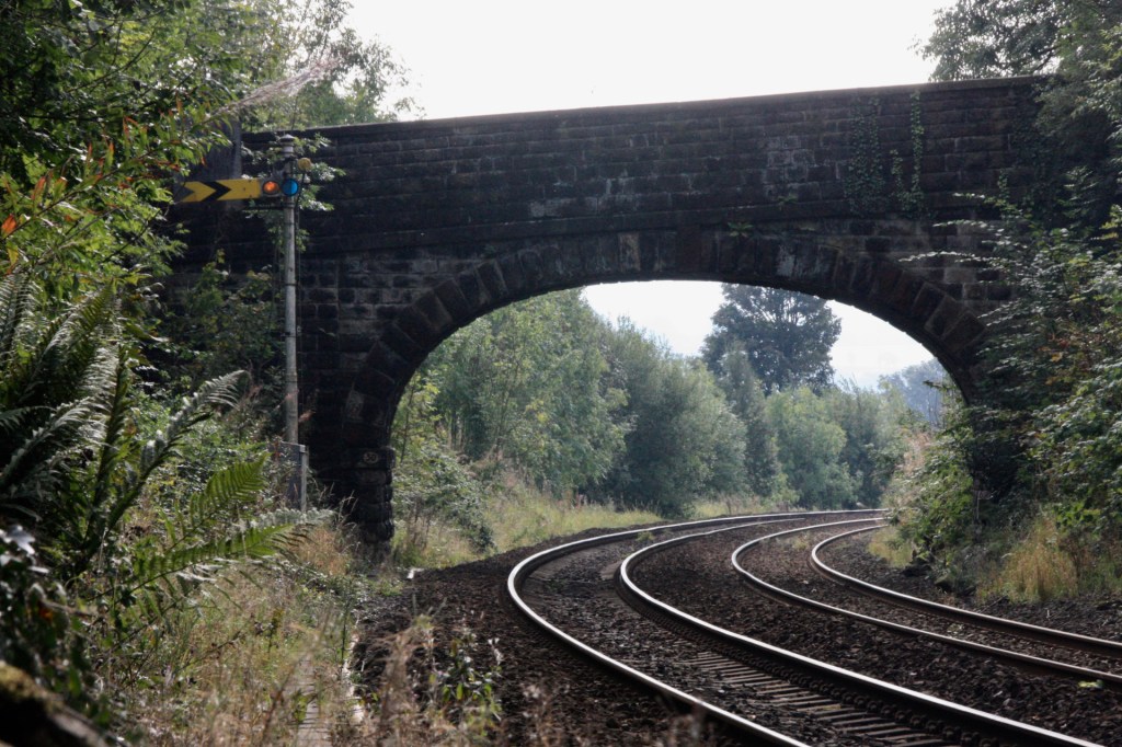 Alas for me when, in perfect light and after a 40 minute wait, the signal was briefly pulled off, but somehow returned to the horizontal just before the northbound train passed, only to be pulled off again as the Manchester-bound train disappeared from view!