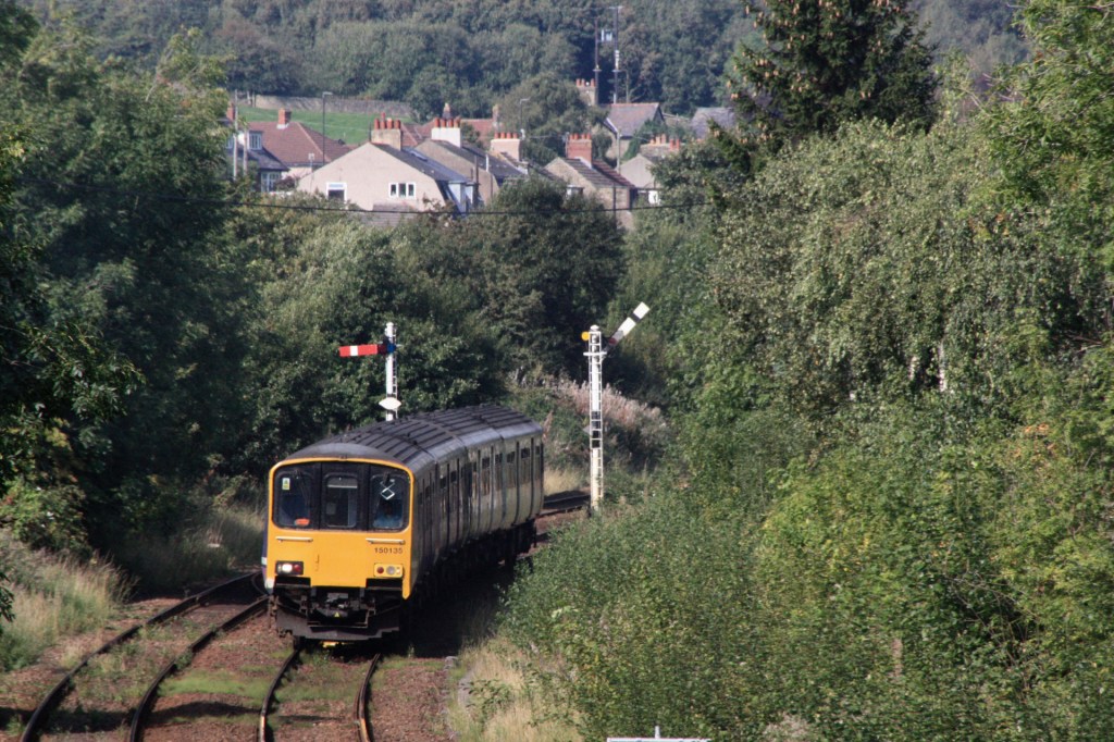 150135/116 approach Furness Vale with the 12.08 Manchester Piccadilly-Buxton