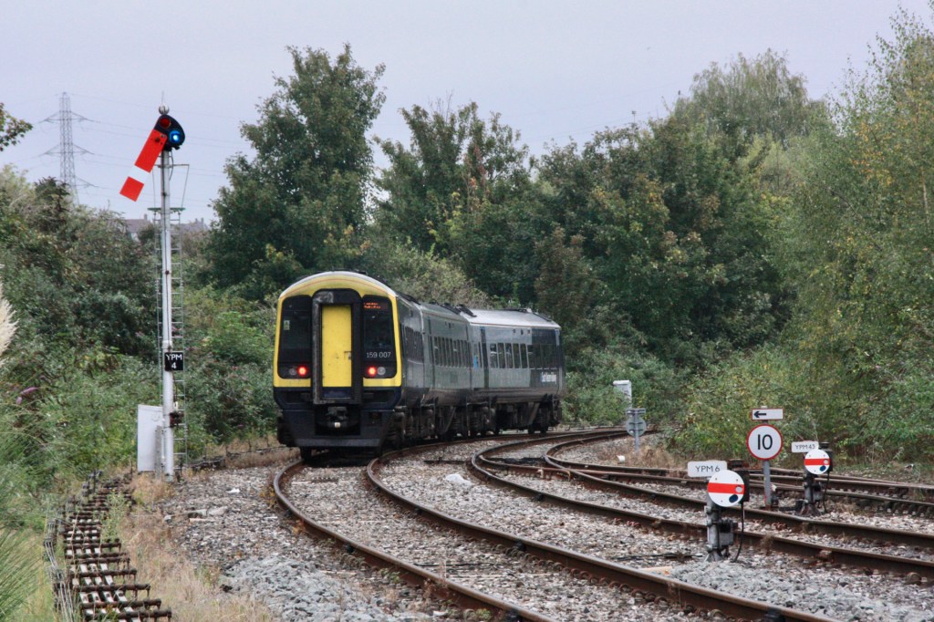 SWR 159007 departs Pen Mill with the 10.56 to London Waterloo (1O40)