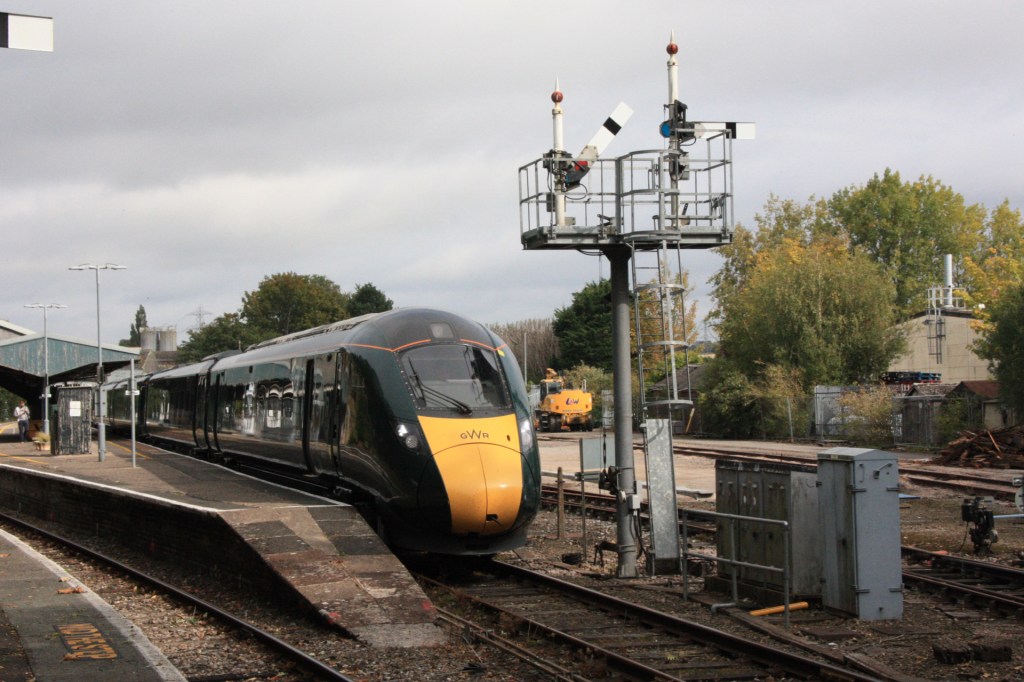 A five-day blockade of the main line between Taunton and Exeter St. Davids from Monday (28 September 2020) meant the rare opportunity to see GWR Class 80x IETs at Yeovil Pen Mill, as services between London and Plymouth were diverted between Castle Cary and Exeter via Yeovil.