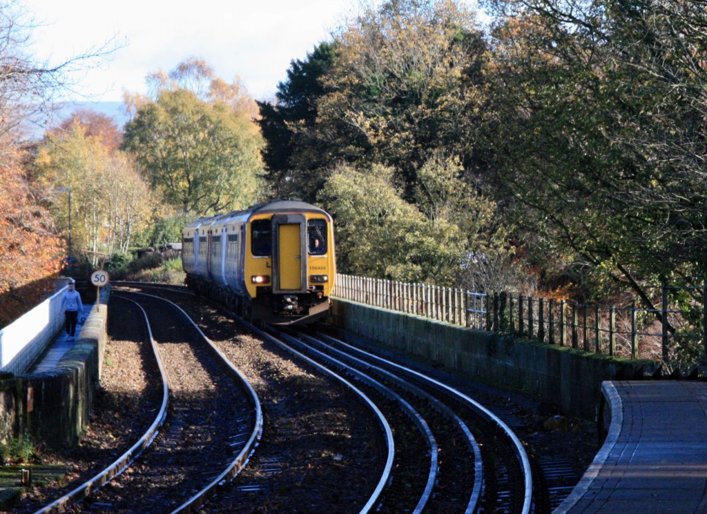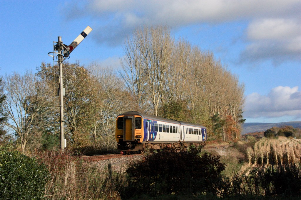 156428 approaches Sandy Lane FP with the 11.23 Newcastle-Carlisle (2N15)