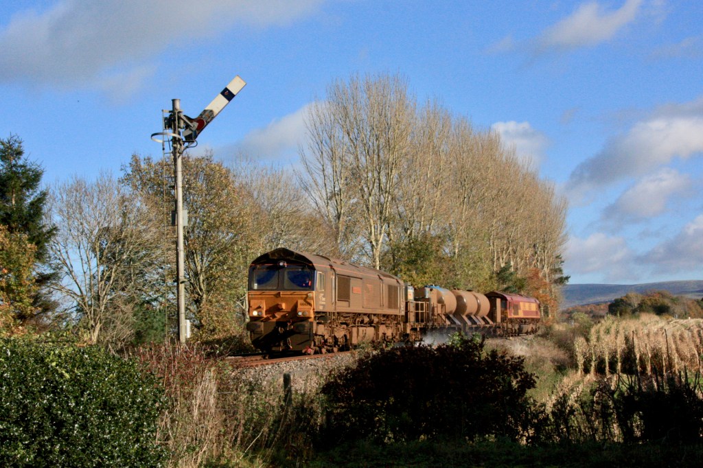 There is a great panoramic view looking east from the crossing, and a highlight of my visit to this spot was the sight of DRS 66421/126 passing at around 13.00 with the seasonal twice-weekly (WFO) RHTT working from Nunthorpe to Carlisle (bottom photo).