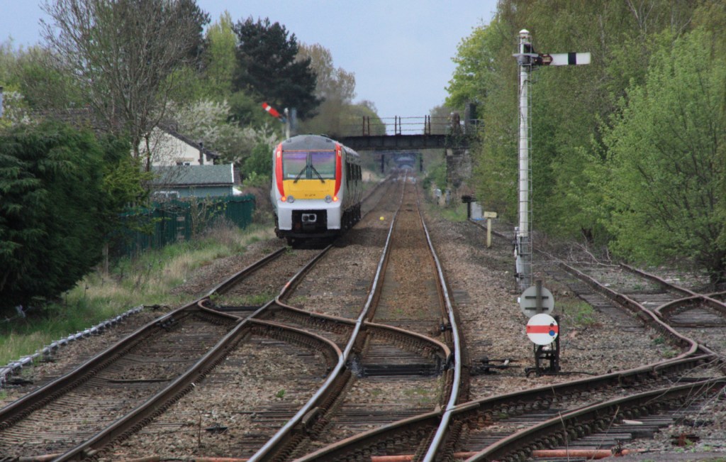 Returning towards the station then continuing along the main road for about 300 yards brought me to a second new photo spot at the end of a short residential street called Bank House Lane. Here an easily-climbed gate gets you onto an over-bridge with an old Land Rover on it (pictured above), beyond which there is a good view back to the station with down section signal HY36 in view along with up homes HY2 and HY6 in front of another bridge.