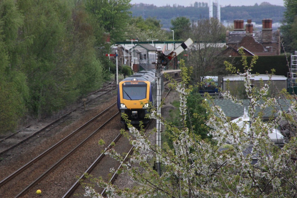 Under the limited COVID-19 timetable currently in force there is just one daily “Parliamentary” service on the Cinderella route to Ellesmere Port, departing Helsby at 06.00 and returning from Ellesmere Port at 06.19, then calling at Helsby (06.29) on its Monday-Saturday journey to Leeds (08.41).