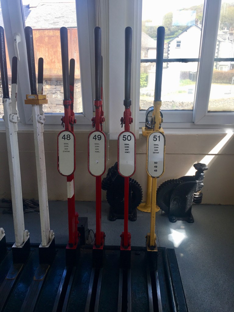 The box’s survival is in no small measure due to its close proximity to the manned Skelly Crag level crossing, just south of the station, whose gate keeper must telephone the Foxfield signaller for permission to open the crossing gates to vehicular traffic.