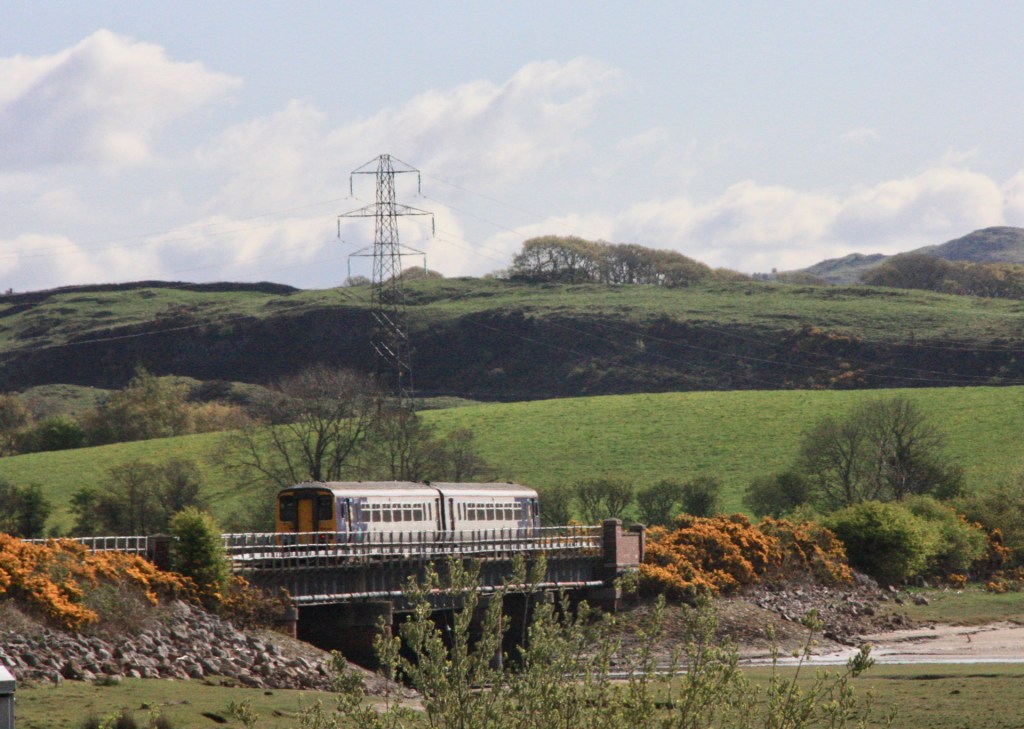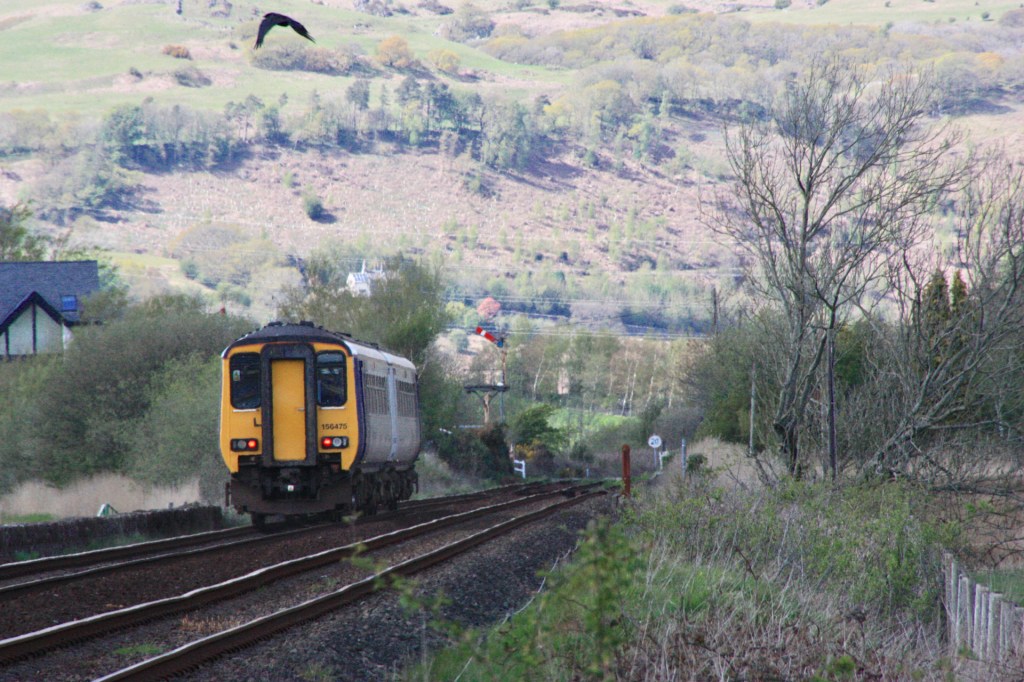 My photographic challenge during a visit on 5 May 2021 was to get shots of trains passing the two Foxfield distant signals, so for the close up shot of up distant FD1 I travelled from my base at Millom to the request stop at Green Road, mid-way between Millom and Foxfield, then walked the mile or so north to Lady Hall Crossing.