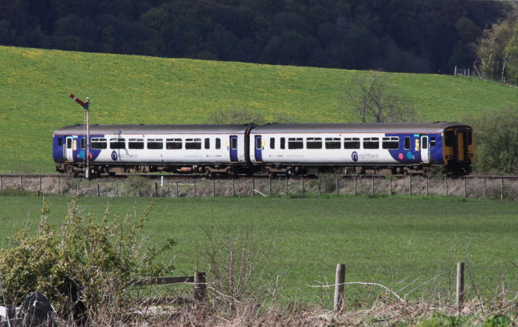 I had reached here on foot from Foxfield in December and was keen to get shots in better weather of a Carlisle-bound train passing FD51, and then, looking north, the Foxfield down outer home signal FD50.