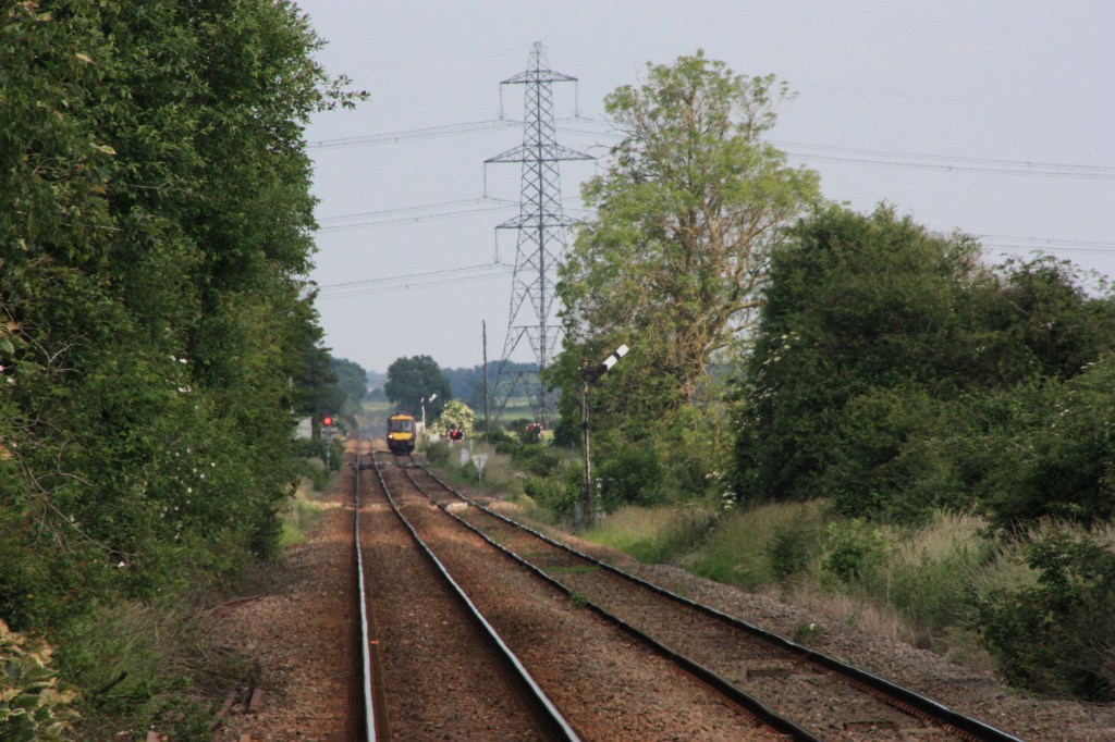 On a clear and sunny day it is possible to look east from the end of the down platform at Heckington station and using a zoom lens capture a train passing HN1 and approaching up home HN2, as seen in the shot above showing 170419 with 2S20 from Skegness (15.14) to Nottingham.