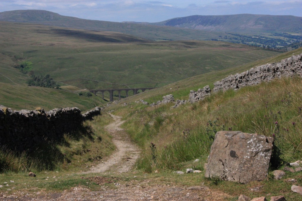 On a fine day this is a pleasant walk that takes around 4½ hours, beginning with a steady mile-long ascent on the road leading north from Dent station then continuing right along a good a level track for a couple of miles, before another sharp right turn and a descent alongside Artengill Beck towards and under Arten Gill Viaduct.