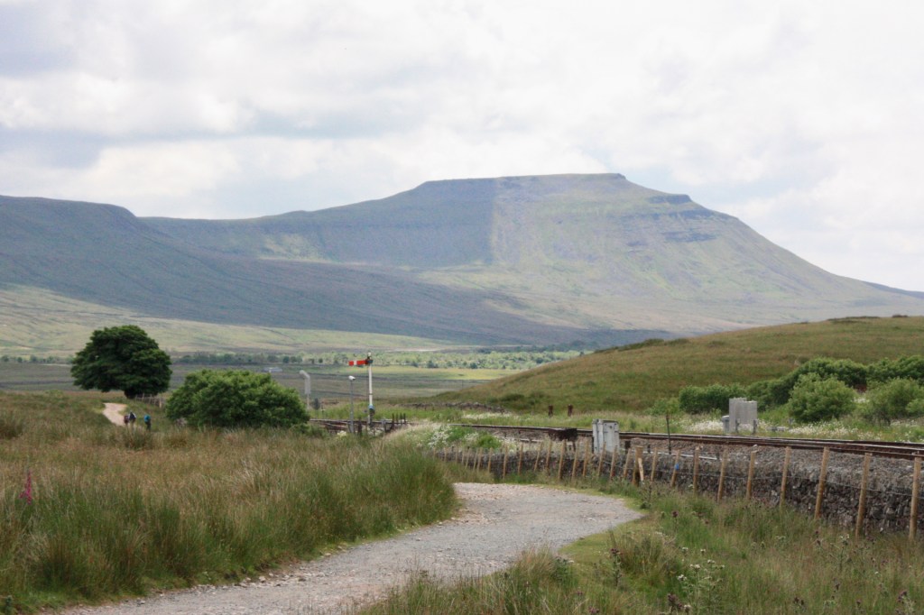 From here there are fine views of Whernside to your right and Ingleborough straight ahead as the path gradually levels off, before descending down past tunnel shafts no. 2 and 1, then taking you on the north side of the railway, and behind England’s remotest signal box on a wide track running close to England’s finest railway viaduct and on to the Station Inn at Ribblehead