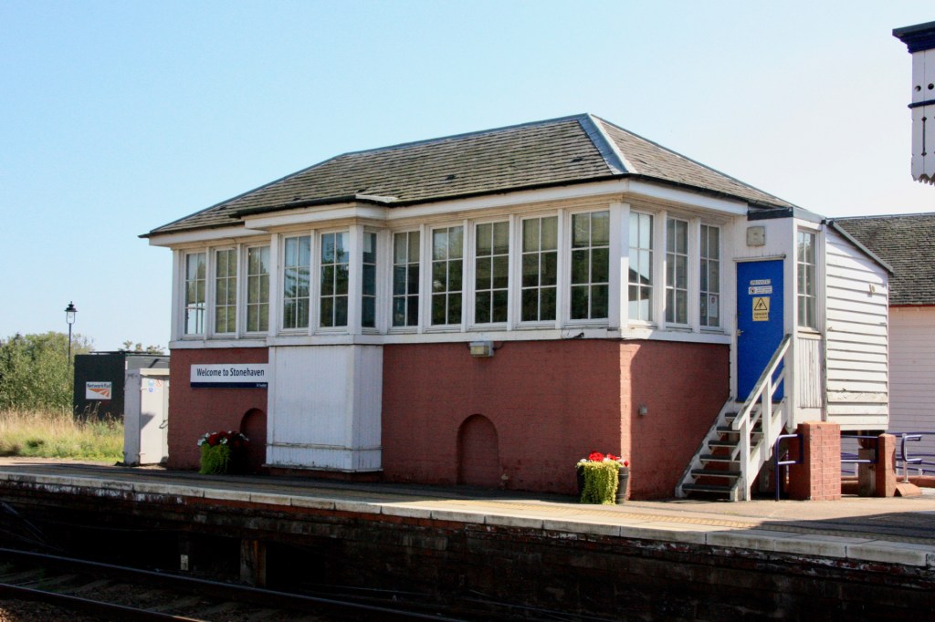 Stonehaven, 16¼ miles south of the Granite City, is home to an attractive and listed Caledonian Railway Type 2 box dating in its present form from 1901, but the extension of a much earlier Caledonian Railway box dating from the opening of the station in 1849, and now controls a total of six semaphores.
