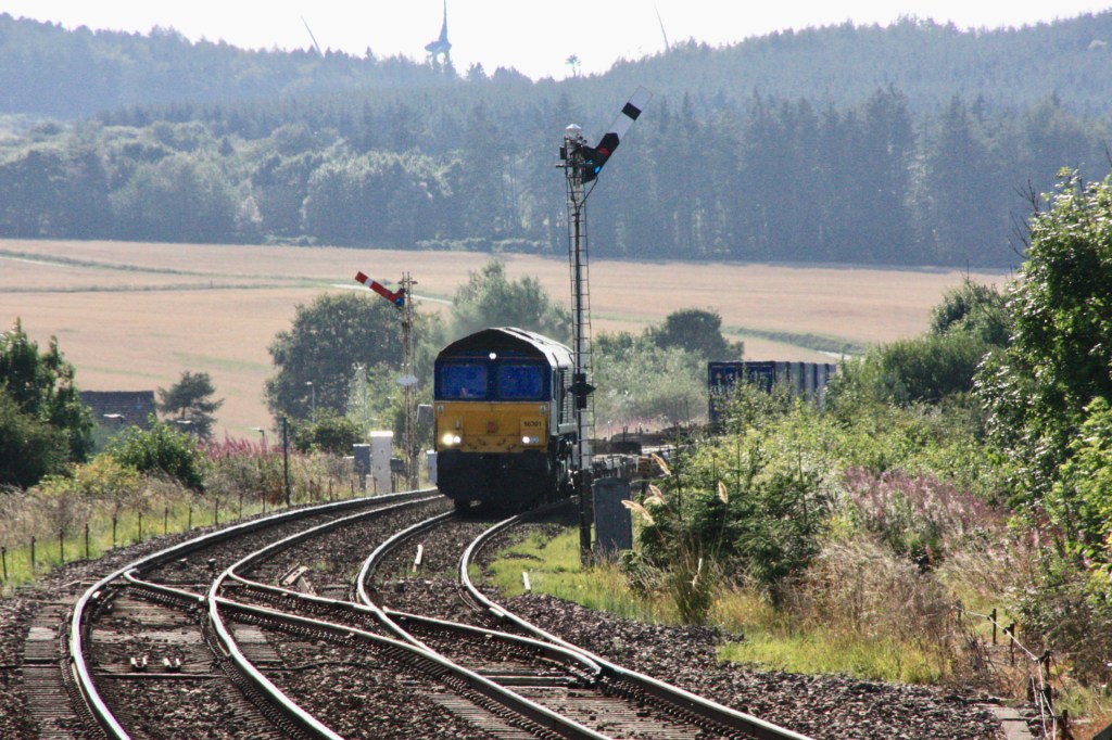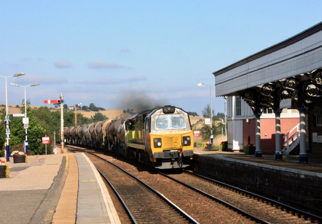 There is a limited amount of freight traffic to and from Aberdeen that passes Stonehaven, but one regular working I had hoped to see – cement tanks from Oxwellmains Lafarge to Aberdeen Craiginches – was cancelled, as it had been on my June visit to Inverkeilor.