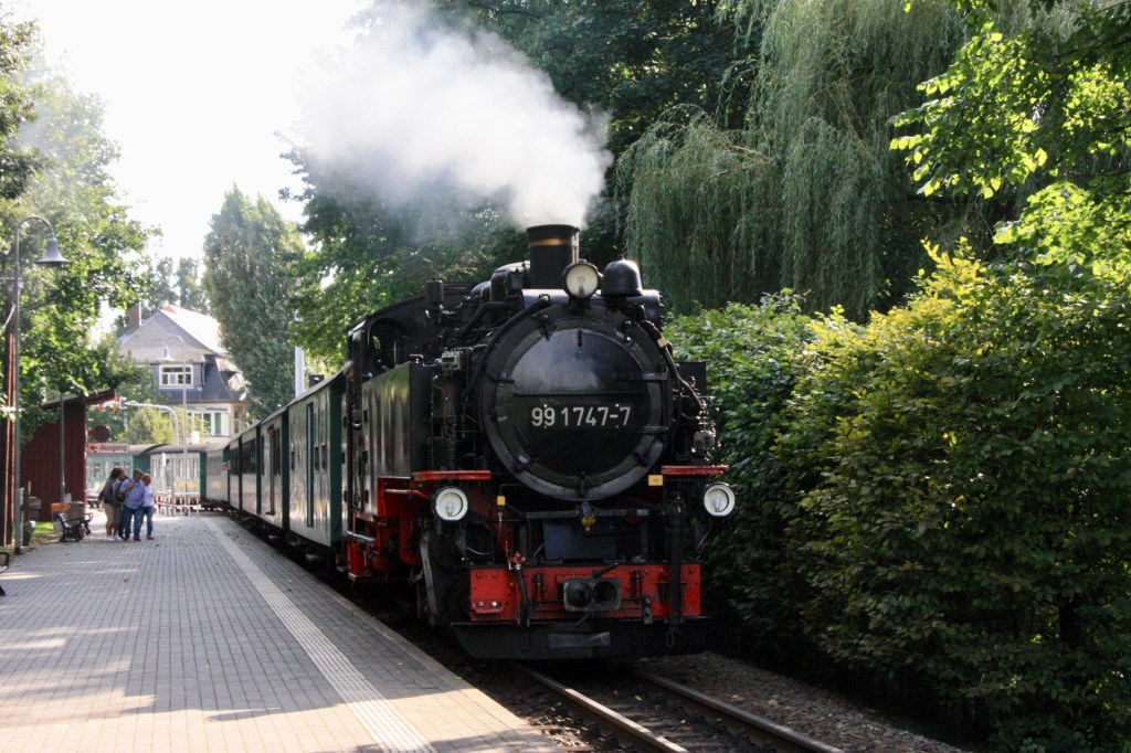 Travelling to the area by train from Berlin, I changed from an IC train at Dresden Neustadt onto a S1 suburban service bound for the famous porcelain town of Meißen and alighted eight minutes later at Radebeul Ost, headquarters of the Lößnitzgrundbahn and home to its fleet of 2-10-2 tank engines.