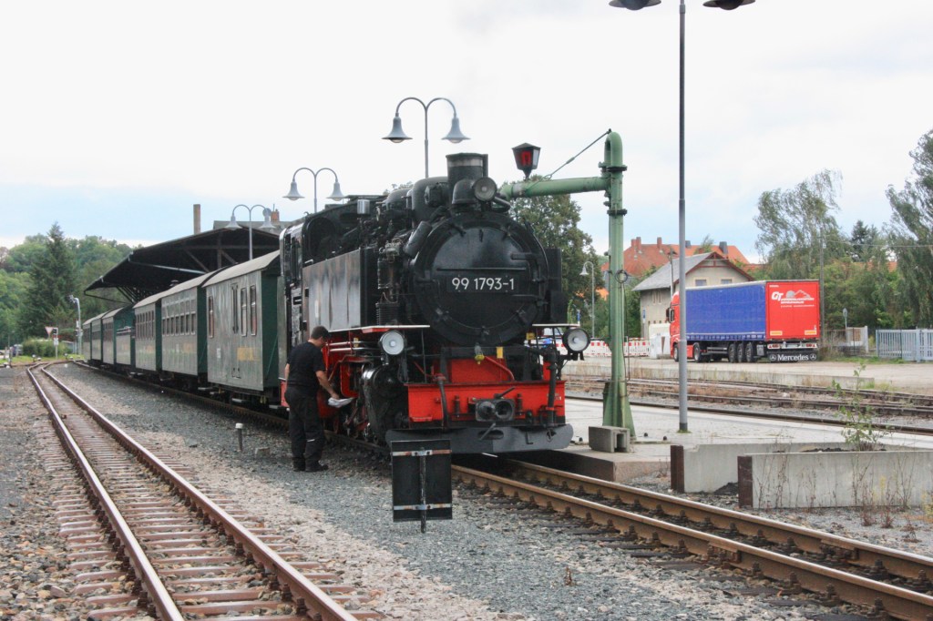 Visiting the two lines on a regular operating day means you will only see that day’s loco in action and not get the chance to see the rest of the working fleet, which are locked away in the depots, although I did at least get to see 1921-built Saxon-Meyer 0-4-4-0T 99-1608 outside the depot at Freital-Hainsberg after its duties at a festival a few days before my visit.