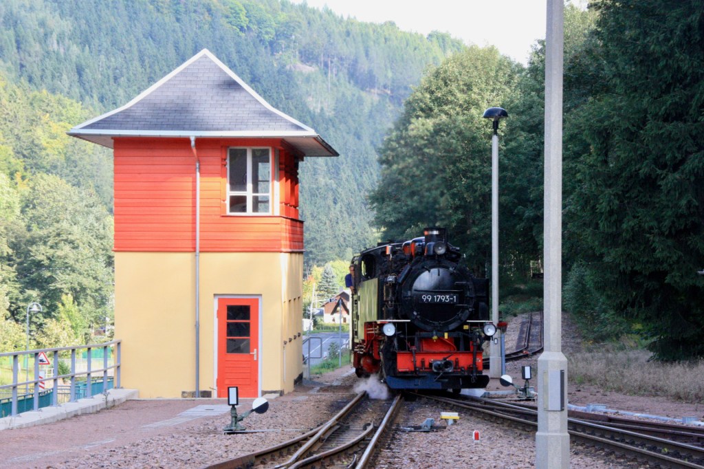 On the Weißeritzalbahn there are good vantage points on either side of the station at Dippoldiswalde, including one at an ungated crossing leading to an industrial estate just to the north and a ten minute walk from the station. There is an impressive viaduct on the approach to Schmiedeberg which I would like to have photographed, and at Kurort Kipsdorf there is an impressive disused signal box on the approach to the station.