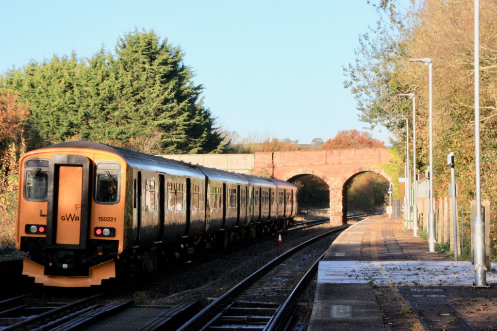 While I had only expected to see a handful of hardy souls aboard the 06.29 departure from Exeter St. David’s on that inaugural weekday journey (Monday, 22 November 2021), what came as a shock was the lack of custom for the 07.20 departure from Okehampton, pictured above, the commuter service that reaches Exeter Central at 08.05.
