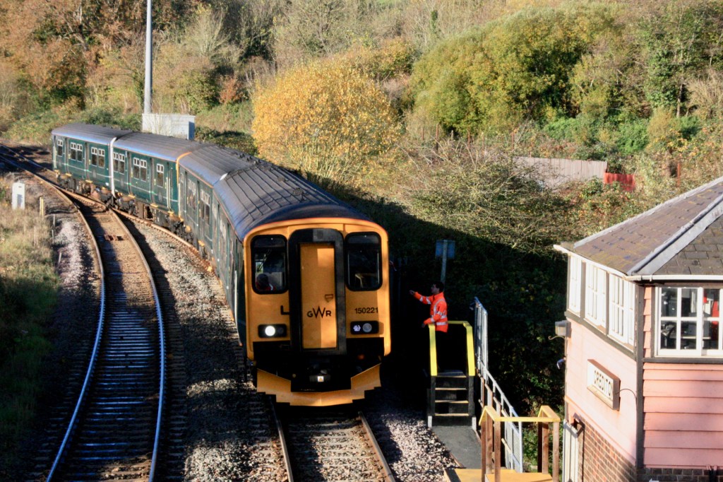Such a change would require some enhancement to signalling of the two routes, which are currently controlled from the historic signal box at Crediton, where all trains pause on their journeys from and to Exeter to collect or surrender tokens for the route to Okehampton or to Eggesford on the Barnstaple line.