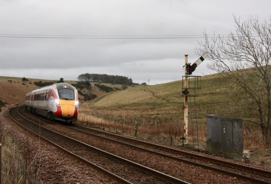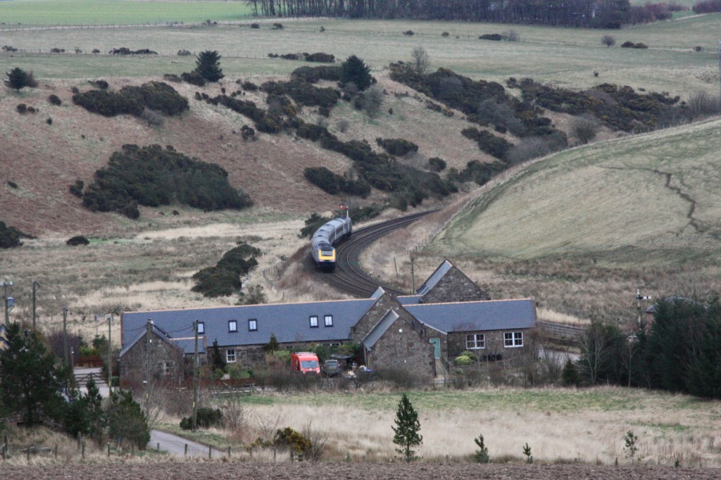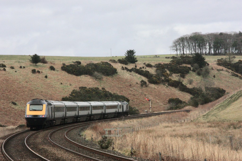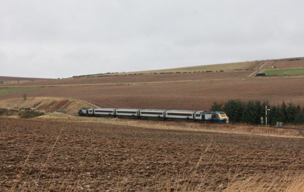 Passenger services passing Carmont comprise Edinburgh/Glasgow-Aberdeen workings, mainly formed of the Scotrail Inter7City 2+4 HST units, but with some Class 170s as well, Class 158-worked local services between Inverurie/Aberdeen and Montrose and LNER Class 80x Azuma services between King’s Cross/Leeds and Aberdeen.