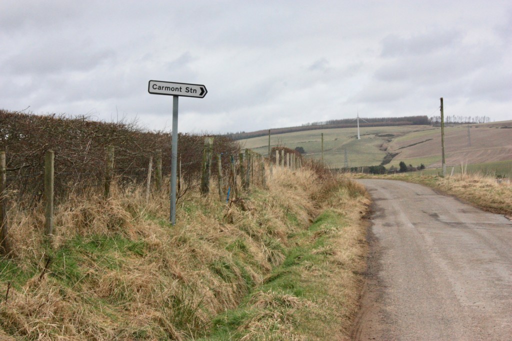 Nothing remains today of Carmont station, which served passengers for just over a century, having opened in September 1855, when it was called New Mill Offset. It became Carmont in 1912, closing to passenges in June 1956 and to freight traffic on 23 May 1964. Amazingly, though, local road signs still point you towards Carmont station.