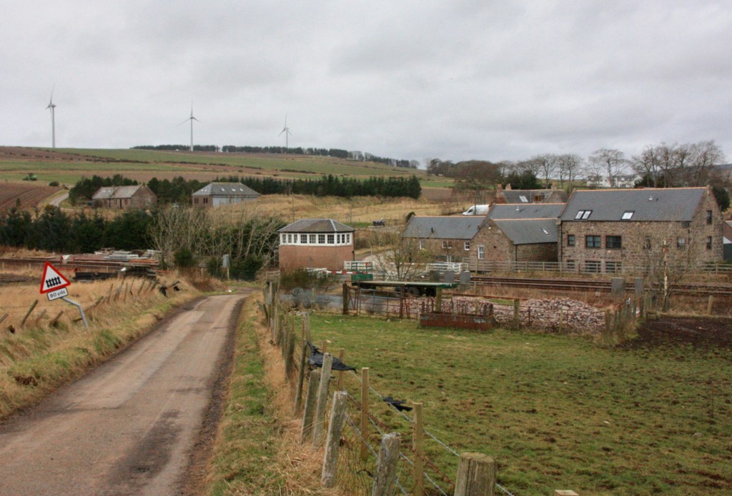Getting to the signal box requires a 15 minute taxi ride from Stonehaven station (£16.50) which takes you out of town and down a country lane, passing near the site of the August 2020 tragedy, towards the small settlement of Newmill, after which the level crossing adjacent to the box is named.