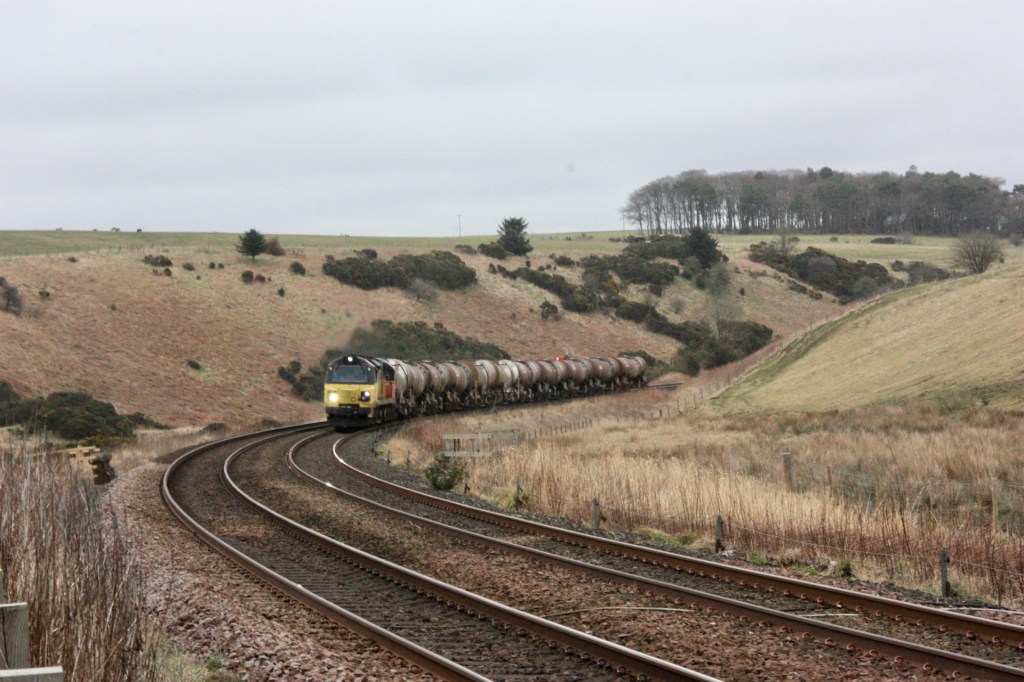 There is also a limited amount of freight traffic to and from Aberdeen that passes Carmont. On the day of my visit I was able to see Colas Rail 70807 heading a train load of tanks south from Aberdeen Waterloo to Carlisle.