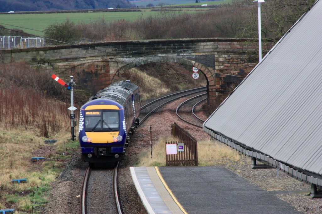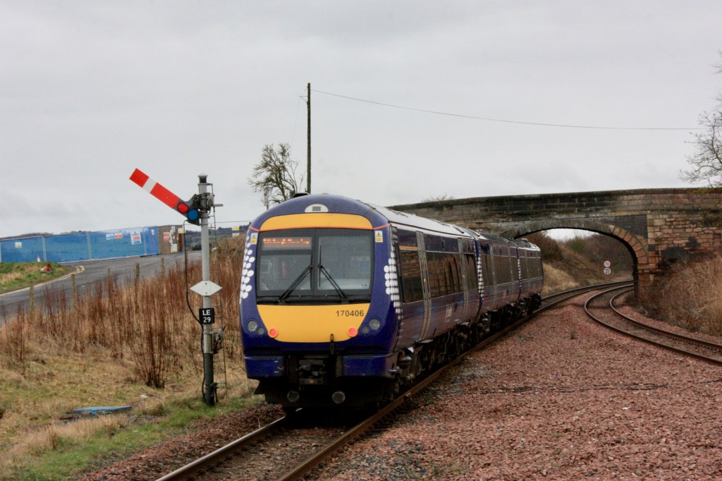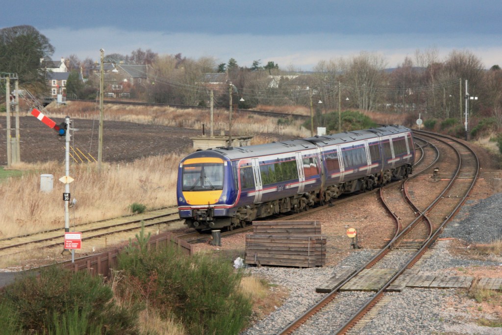 Day-time traffic serving Leuchars comprises hourly Class 170-worked stopping services between Edinburgh Waverley and Arbroath, Scotrail Inter7City HST workings between Edinburgh and Aberdeen, LNER Class 80x Azuma services between London King’s Cross/Leeds and Aberdeen and occasional XC services between Aberdeen/Dundee and South-West England.
