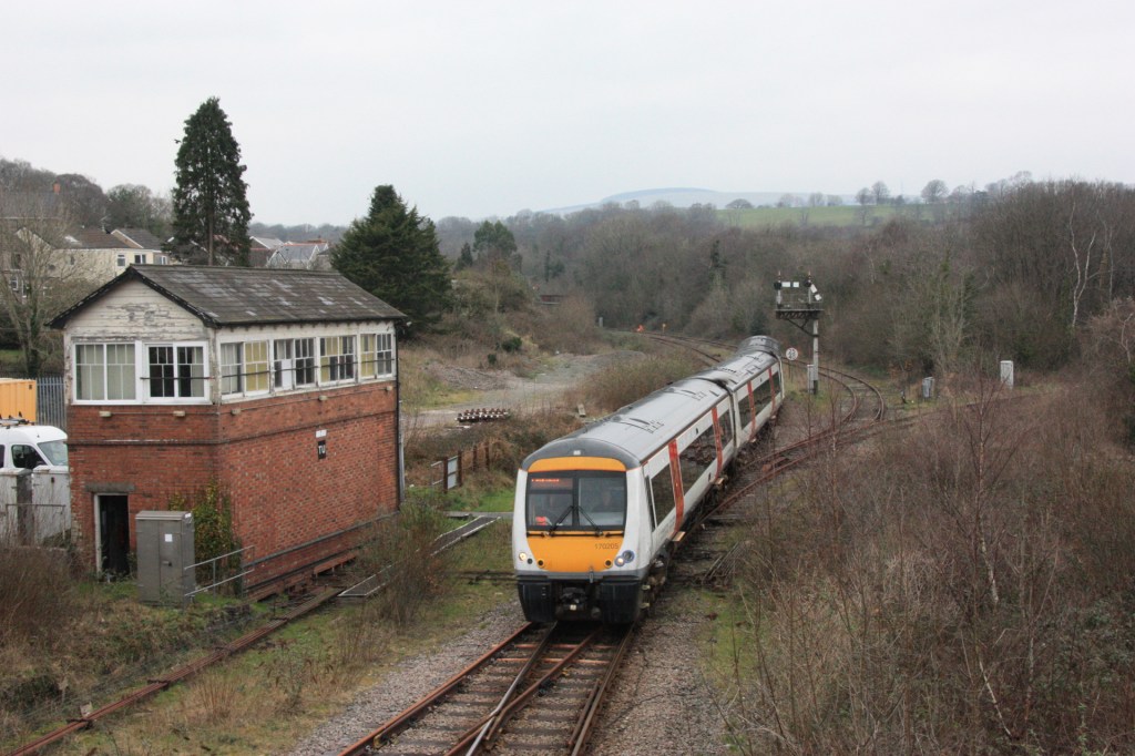 The hourly weekday services passing Tondu comprise Class 170 and 175-worked services between Maesteg and a number of destinations ranging from Cheltenham Spa or Gloucester to Cardiff and Holyhead.