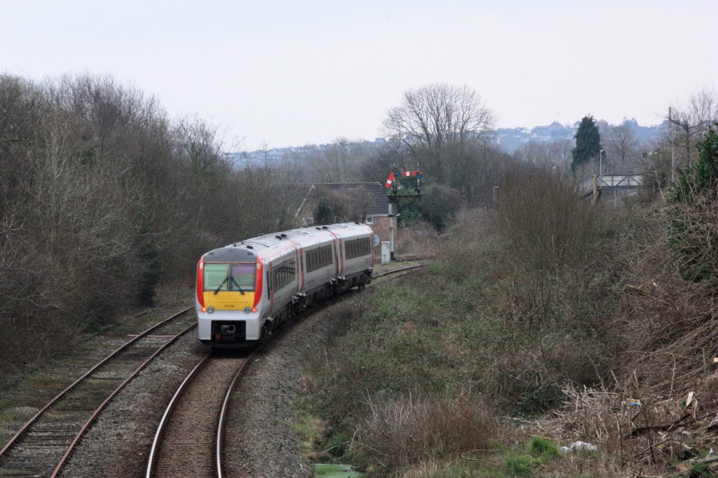 From this footbridge there is a path leading west towards a main road (A4063), where taking a right turn and continuing for around 300 yards brings you to a footpath that leads to another footbridge over the line, close to down section signal TU57.
