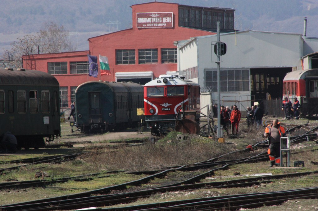 On my return to Septemvri (25 March) however, what appeared to be the last of the Class 77 locos (77-002) stood outside the shed in pristine condition, after returning from a major overhaul in the city of Ruse. A second loco in the 1988-series, 77-009, has now gone to Ruse for overhaul, so the Class 77s will be back in traffic on services to Dobrinishte.