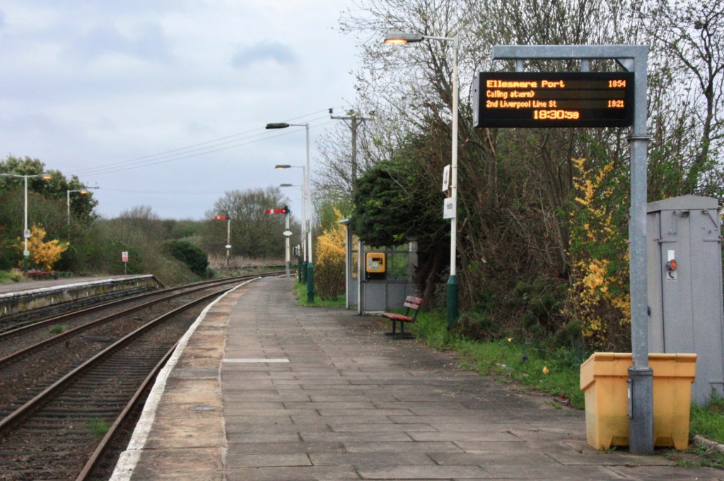 On my previous trip five years ago I had been allowed to briefly alight at one of the two intermediate stations, Stanlow & Thornton, to take a photo. Alas, that is no longer possible, as this station has been “temporarily” closed since early February over concerns regarding the safety of its footbridge.