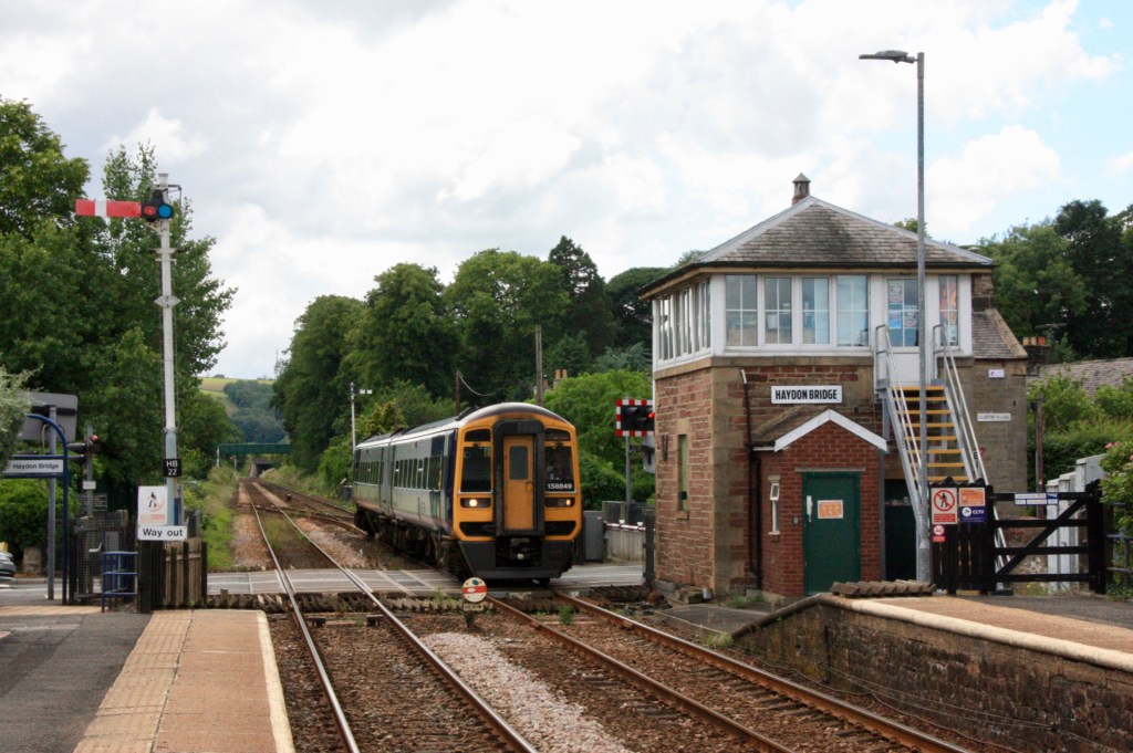 Passenger services passing Haydon Bridge, not all of which call at the station, comprise Class 156/158 workings between Carlisle and Newcastle, some of which continue to Morpeth. These mainly run as single units, but occasional trains are formed of four cars.