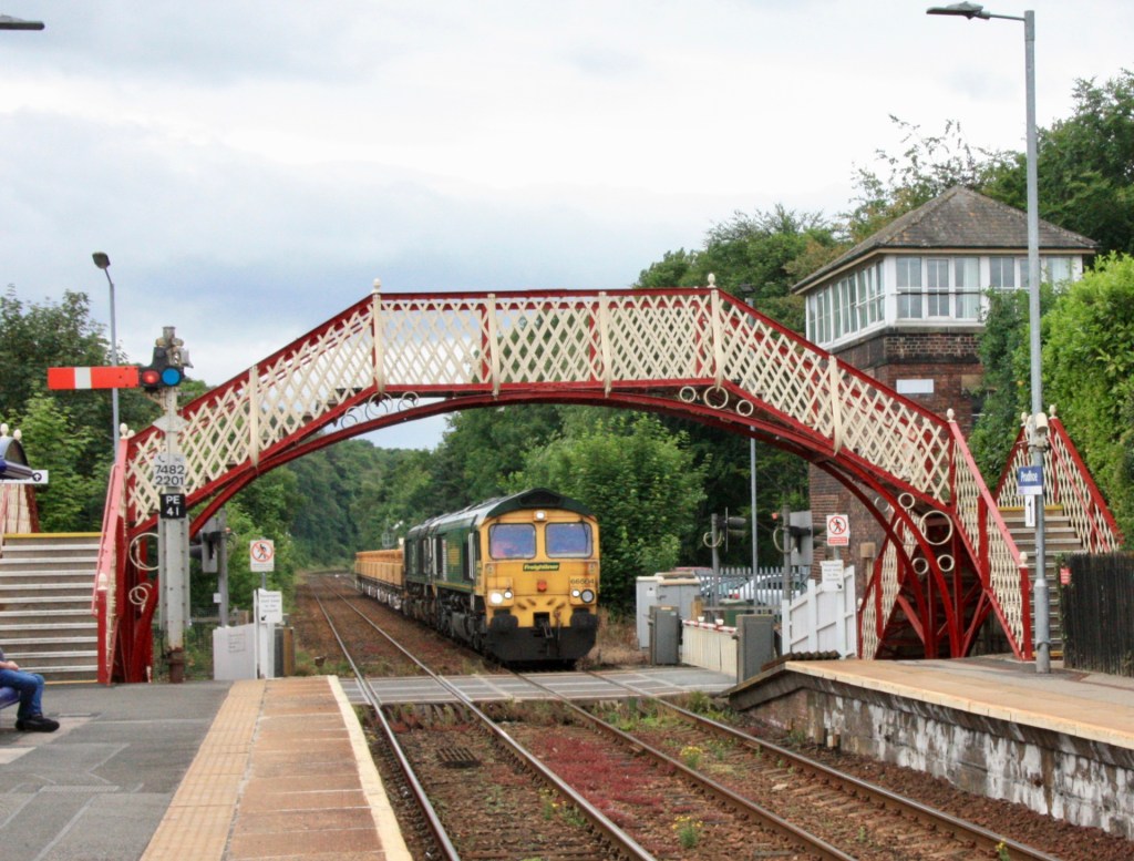 For an interlude between trains at Prudhoe it is well worth taking a look at the 1883-vintage Ovingham Bridge, an impressive single-lane steel structure spanning the River Tyne immediately north of the rail station. Those in need of refreshment should visit the Adam & Eve pub, just south of the station, where I enjoyed a brew called Forbidden Hops (4% and £4.00) from Laine Brewery Company.