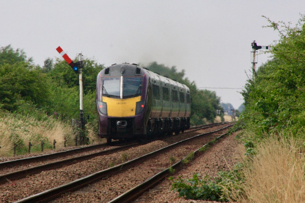 My plan on Saturday, 23 July was to photograph the summer season’s very first 180 as it stood in the station after arrival at 10.26, then walk to a foot crossing on the station approach to capture its 11.42 departure and arrival of the second Class 180 service at 12.09, before taking one of the regular services back as far as Heckington, where I planned to photograph the 13.44 ex-Skegness as it passed non-stop.