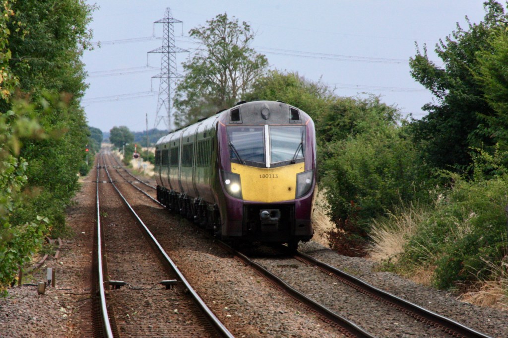 EMR has four of the 14-strong Class 180 fleet (180109-111/113), with the remaining ten units now with Grand Central. They came from Hull Trains and began working on the Midland Mainline in December 2020 as temporary replacements for HSTs, and will operate alongside the Class 222 Meridian units until next year (2023), when both fleets are due to be replaced by new bi-mode Class 810 Aurora units.