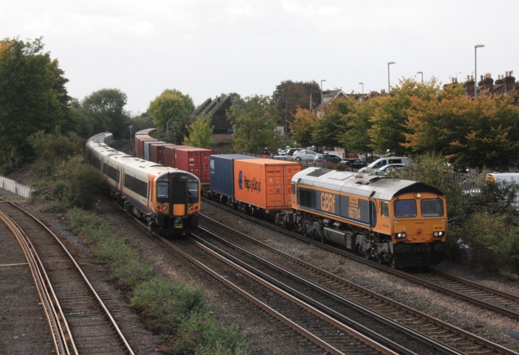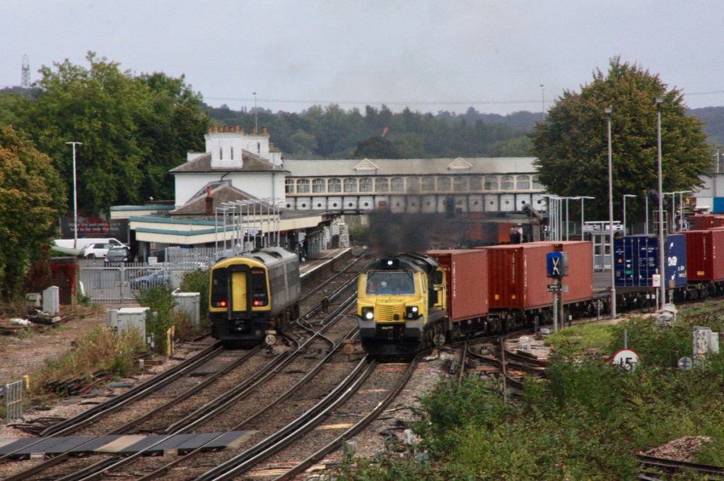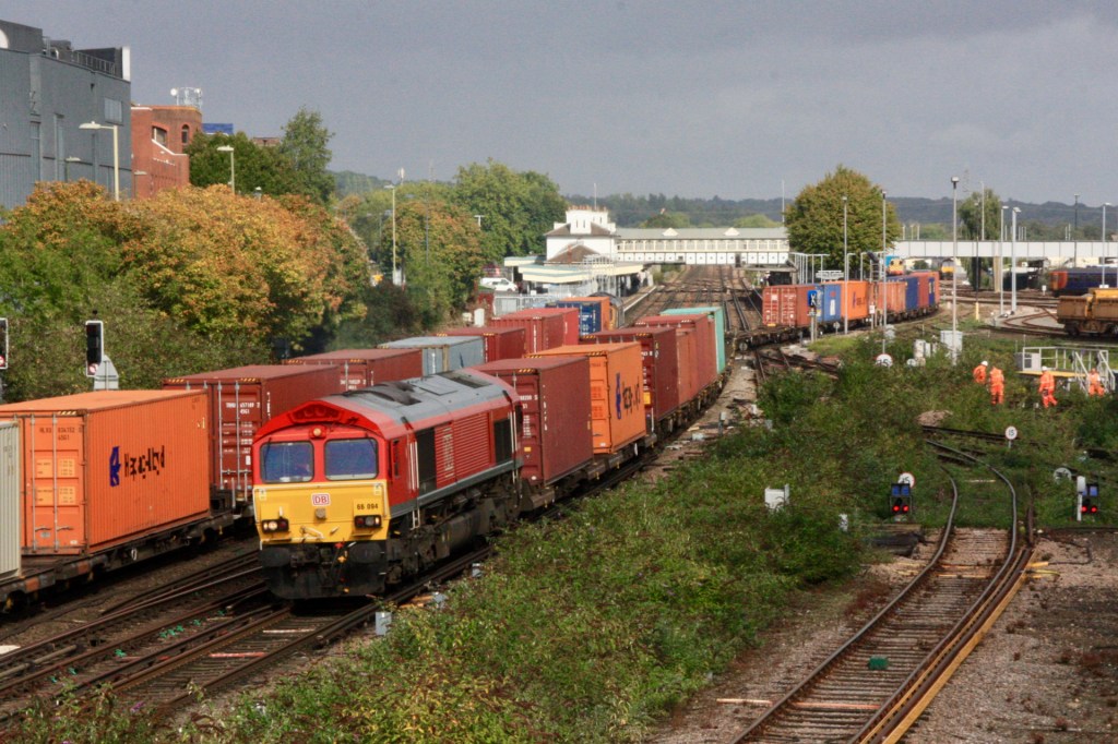 Proving the value of enthusiasts to the operational railway, I did something that I have not previously done when, sitting on platform 2 waiting for a 14.47 departure to take me back to Woking, 66716 passed the platform hauling a departmental working to Westbury (6V41) with its final wagon making a deafening clunking sound that shook the entire platform.