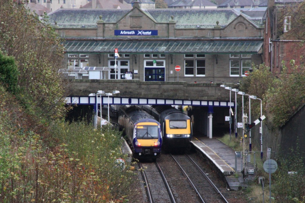 Paying a first return to the town (8 November 2022) since my last visit in June 2021, I was keen to check out a couple of photo-spots to the south of the station and particularly an over-bridge that is close to down outer home signal AH48 and from where there is a panoramic view of the coast looking south and the location, until its closure two years ago, of Scotland’s oldest miniature railway.