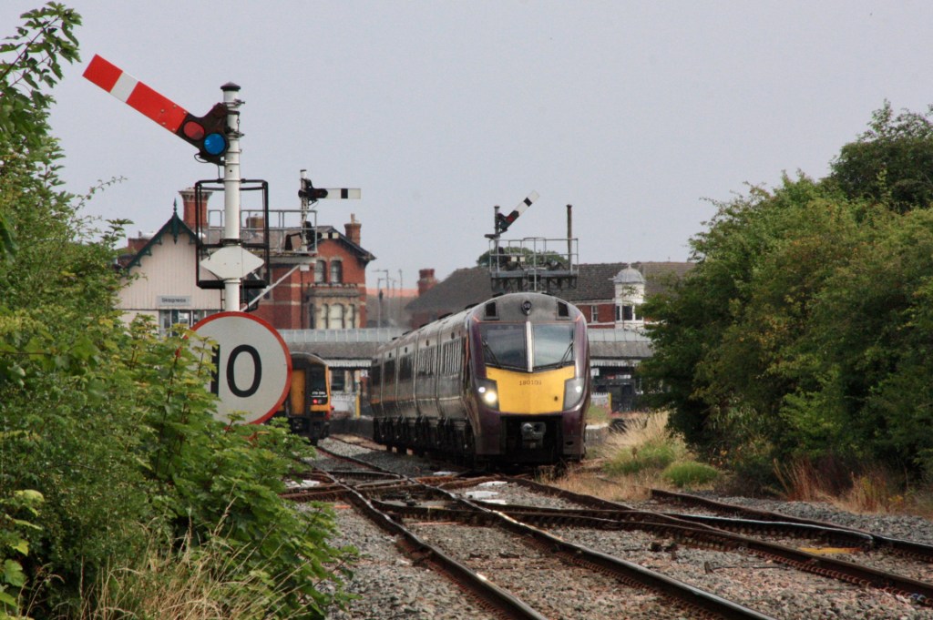 My focus has remained on capturing our last outposts of mechanical signalling, so on 19 January I paid a return visit to the wonderful York-Harrogate line, where fine semaphore signalling remains, despite some piecemeal replacement by colour lights since my previous visit. Seen below is 170458 approaching Wilstrop distant signal W5 with 2C36 from Leeds (13.29) to York.