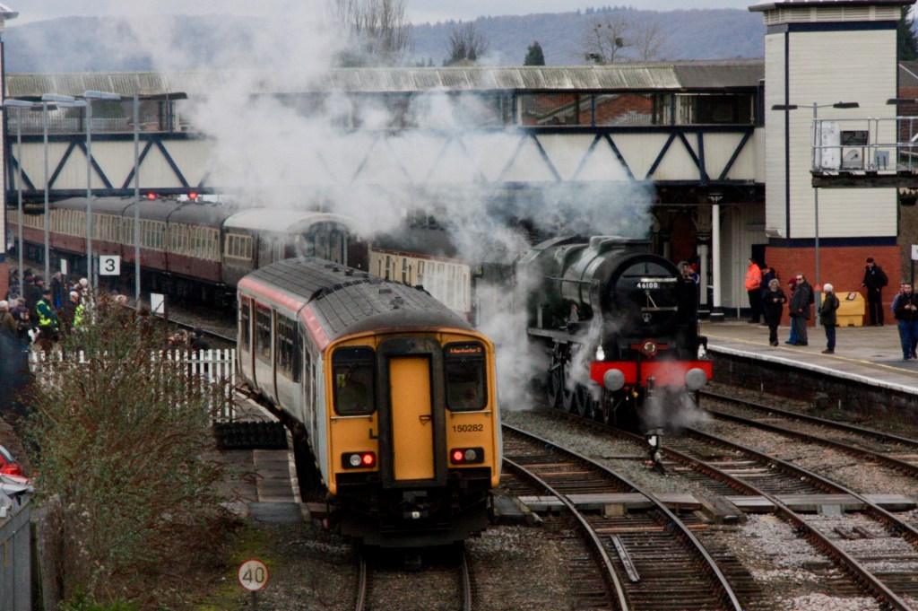 Appropriately picking Wednesday, 1st March 2023 for my visit, I got the priceless bonus of being able to see and photograph 46100 Royal Scot departing Hereford with the “St. David’s Day Welsh Marches Express” (1Z45) from Holyhead to Cardiff Central, and was later able to catch the return working as it passed the semaphores at Abergavenny.