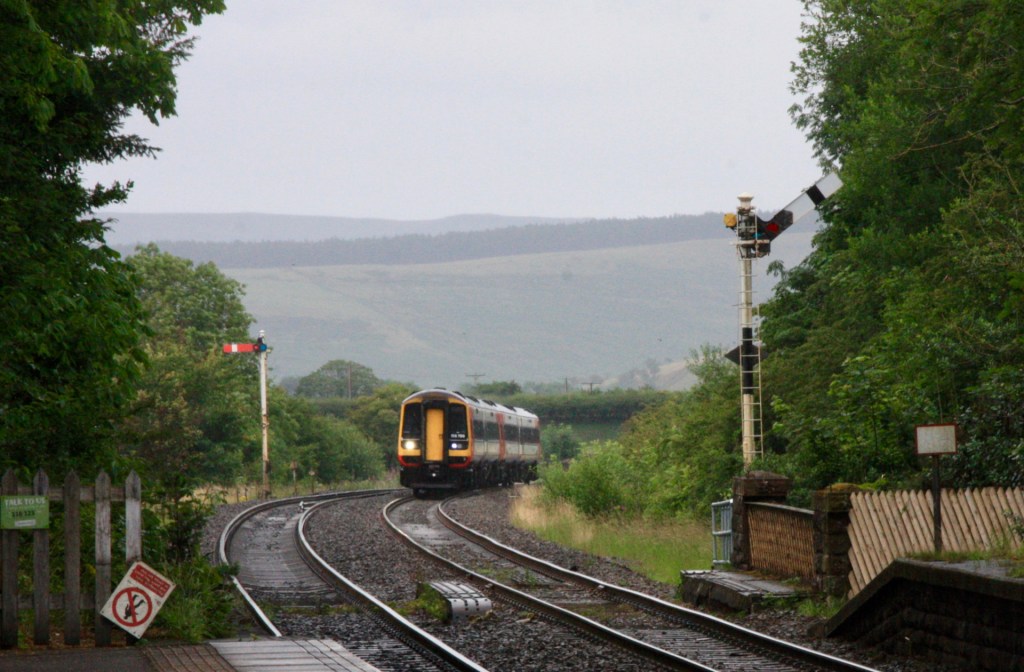 To reach the best vantage point, and a chance to see up home signal EE19, it is well worth taking a five-minute walk along a path south of the railway that is signed to Barber Booth and brings you to a farm track over-bridge, from where there is a great view looking east towards the station and west towards signals EE19 and EE4.