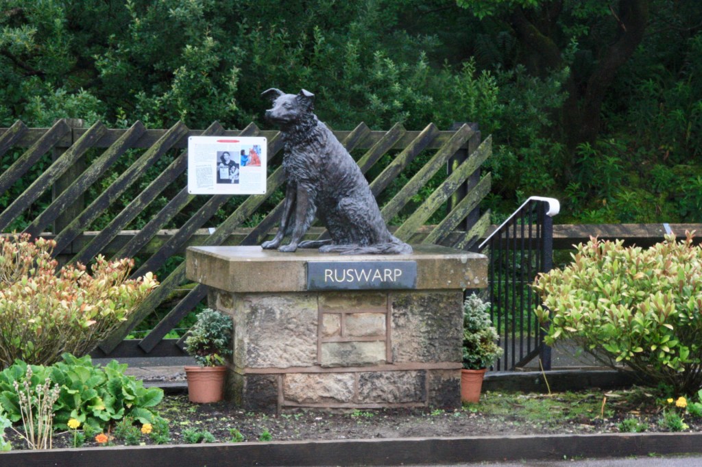 Nuttall disappeared while walking in the Welsh Mountains with Ruswarp on 20 January 1990 and his body was not discovered until 7 April, after Ruswarp had been standing by his master’s body for 11 weeks. Ruswarp died shortly after his master’s funeral and his statue was unveiled on 11 April 2009, to mark the 20th anniversary of the line being saved from closure.