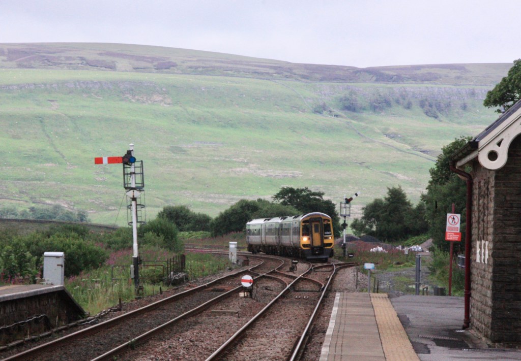 Weekday passenger services at Garsdale are probably the best they have ever been, and currently comprise eight northbound and eight southbound calls on Mondays to Fridays, with five trains calling in each direction on Sundays. Services are 2/3/4 coaches in length and all formed of Class 158 units.