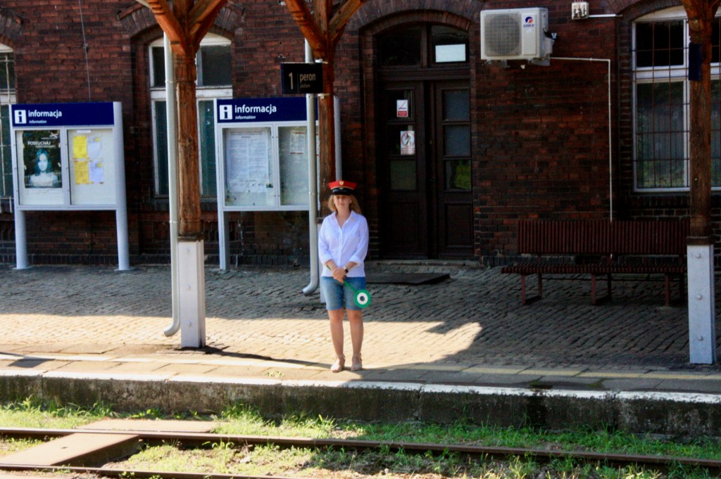 There were a line of tank wagons and some other modern container carrying wagons in a freight yard south of the station, suggesting that there is some weekday PKP rail action here, with semaphore signalling at both ends of the station and a friendly crossing keeper manning the small signal box at the south end of the station complex, where the three lines divide.