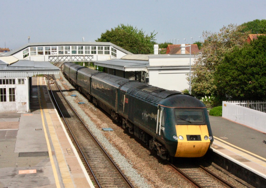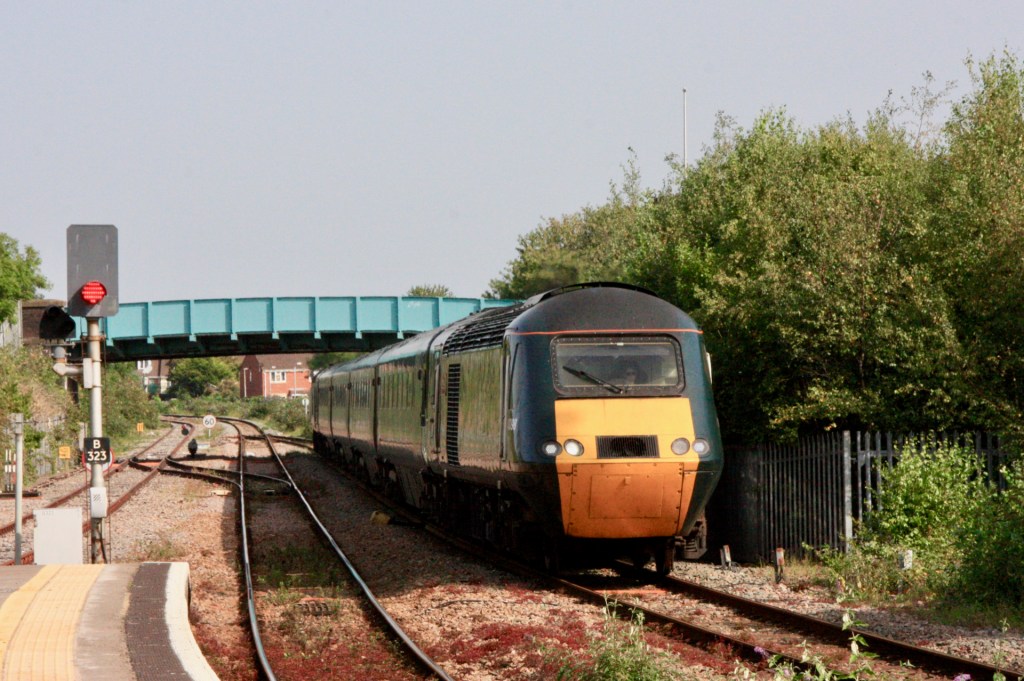 Having got a shot of 43008 heading its final southbound working of 1V50 from Edinburgh Waverley to Plymouth, I continued on by catching a GWR HST set formed of 43042/010 to Weston-super-Mare, where once again the best vantage point seemed to be on the lengthy main up platform (2) where there is a view looking towards the single track section of line to Worle Junction.