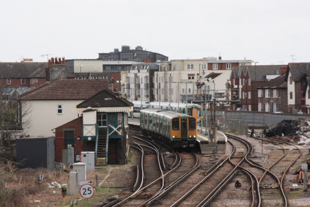 Later in the month I paid the first of two visits to the South Coast (15 March) when my objective was to photograph the doomed Class 313 units passing the equally doomed semaphores at Bognor Regis and Littlehampton. In the view above 313204 departs Littlehampton with 2P30 to Bognor Regis while in the shot below 313210 departs platform three at Bognor Regis with 2P79 to Barnham.