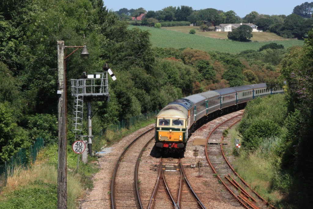 Only a few days later (24 June) I paid a return visit to the doomed semaphores at Par in Cornwall, where the Mazey Day celebrations in Penzance produced two special trains, both from the West Midlands. Passing two of the semaphore signals that are finally due to disappear at the end of February 2024 are 69005/6 with 1Z69 from Tame Bridge Parkway.