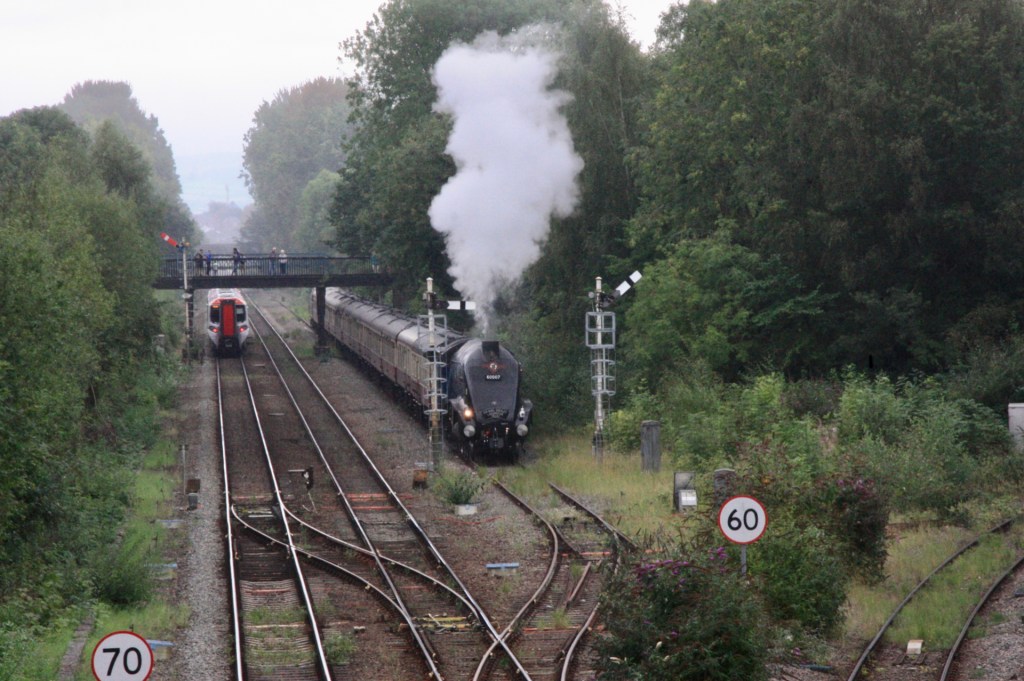 Among the highlights of a visit to Shrewsbury on 31 August was loco action in the form of LNER “Streamliner” 60007 Sir Nigel Gresley at Sutton Bridge Junction, on a special from Working, and Colas Rail 37405 approaching the station with the RHTT wagons that would be working during the autumn circuit from Coleham Yard.