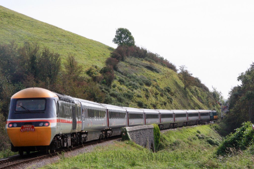 What I thought would have been my final sighting of the celebrity XC HST power cars came with a delightful day on the Swanage Railway (26 September) when I joined many other enthusiasts in witnessing their final workings in passenger service, with a Leeds-Swanage special and a Swanage-Bournemouth midday trip. In the view below 43007/008 approach Corfe Castle with 1Z43 from Leeds.