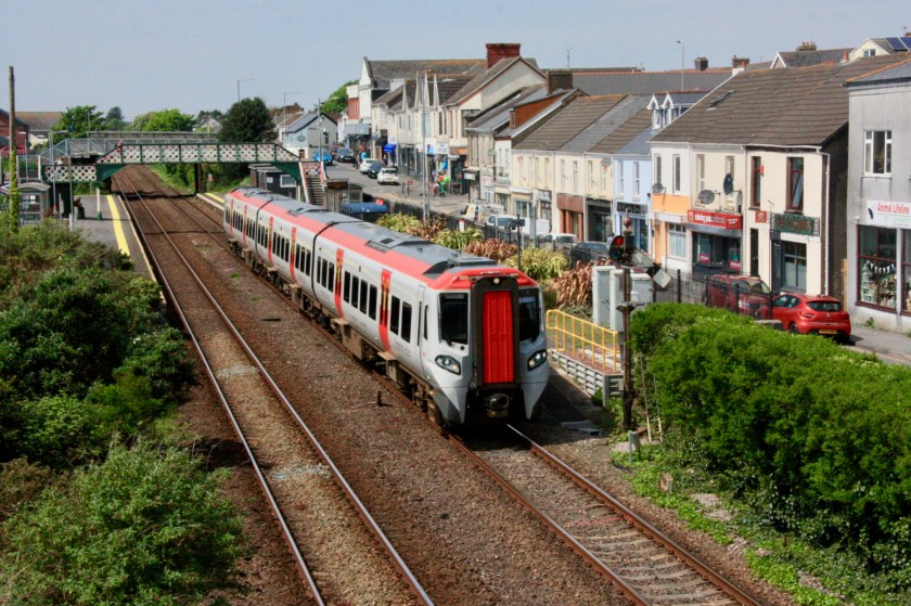 As I noted in November 2023, passenger services to Carmarthen and Milford Haven are now in the hands of the new Class 197 units, with 5-car Class 80x IET units on the Paddington-Carmarthen services, while services to Pembroke Dock and Fishguard Harbour are still formed of Class 150 or 153 units.