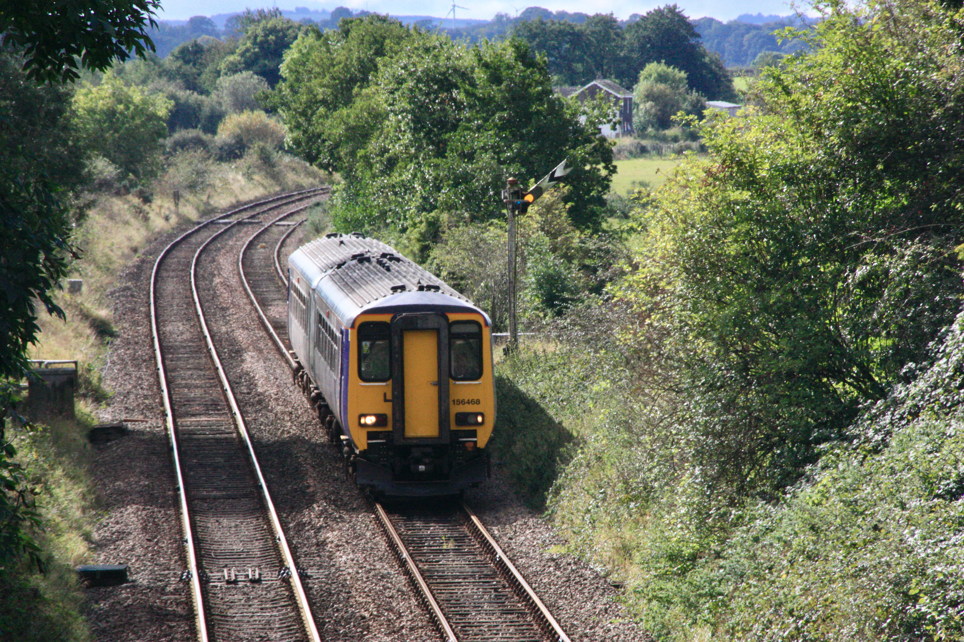 It is an easy 25 minute walk from the railway station up to the town centre and turning right through and out of town on the B5302 as far as Brookfield over-bridge, from where there is indeed a good view of WN1 looking south. But the bridge parapet is high, so I had to hastily borrow an old plastic chair from a nearby field to stand on to get the shot!