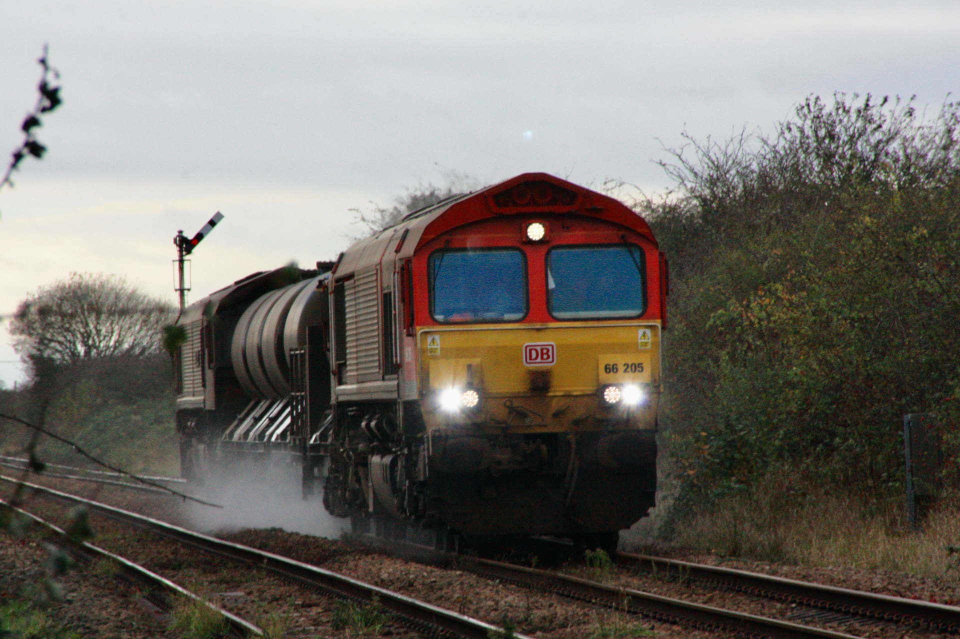 But it was not just Class 37 action that brought some variety to the railway scene at Skegness on 28 October, for no sooner had the UTU departed back to Derby, when along came DB 66205/066 with the thrice-weekly Railhead Treatment Train (RHTT) 3J42 on its seasonal circuit from Doncaster to Peterborough.